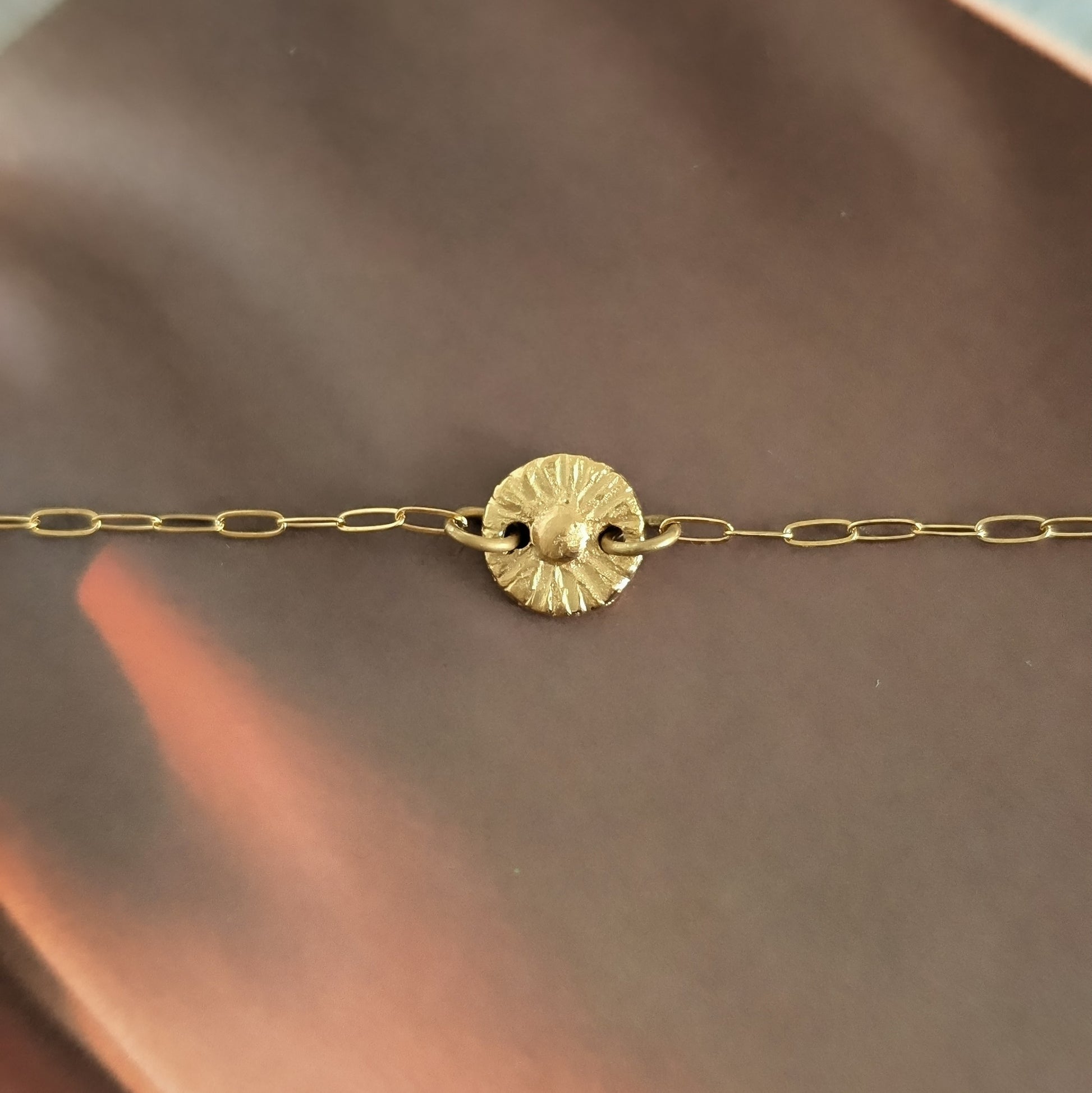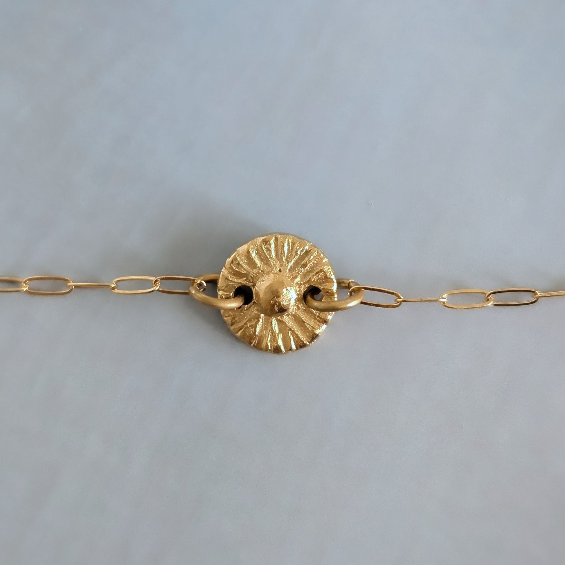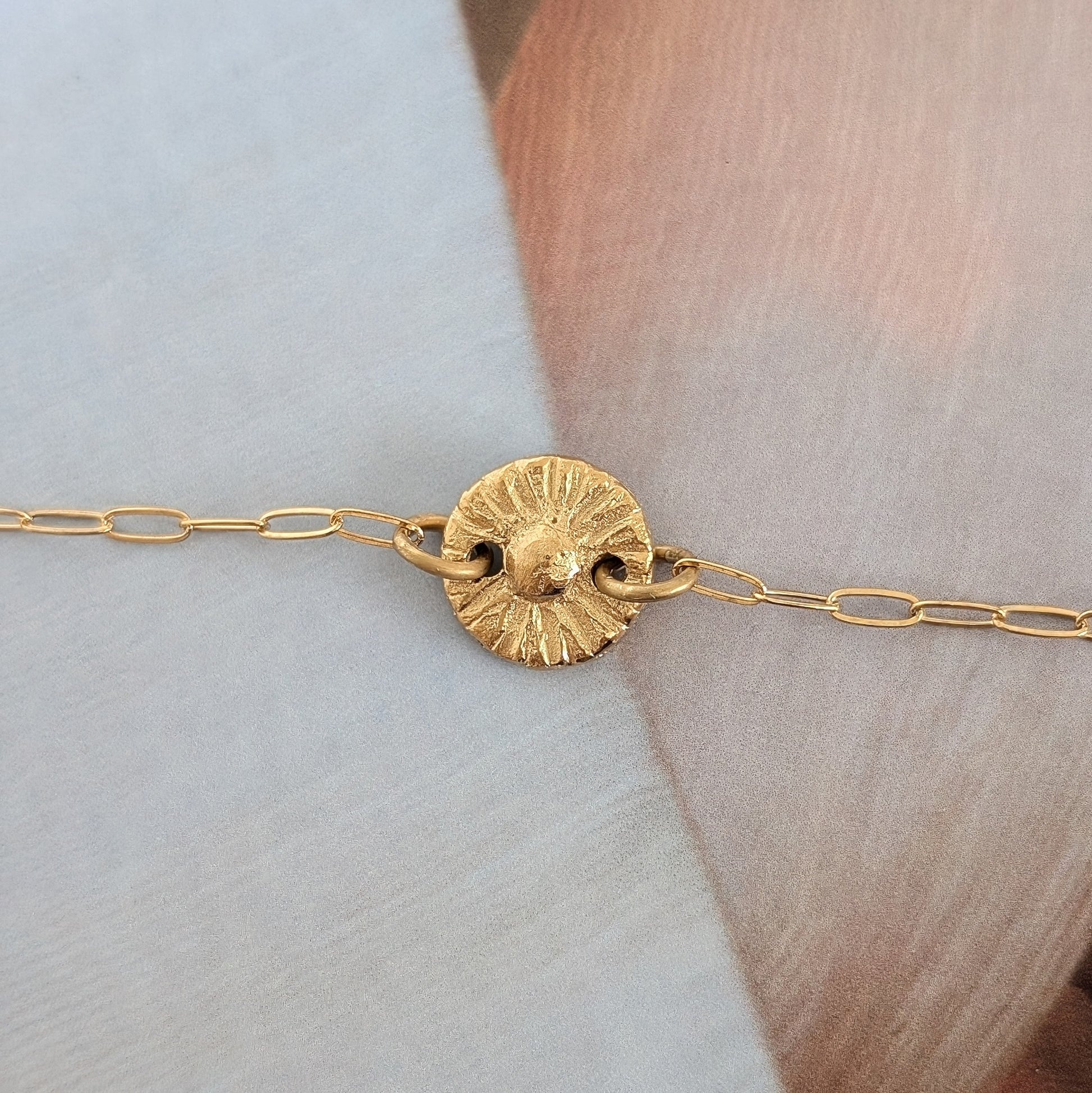 Armbånd med et lite "sol"-anheng. Justerbar størrelse. Fra kolleksjonen "Aurora".