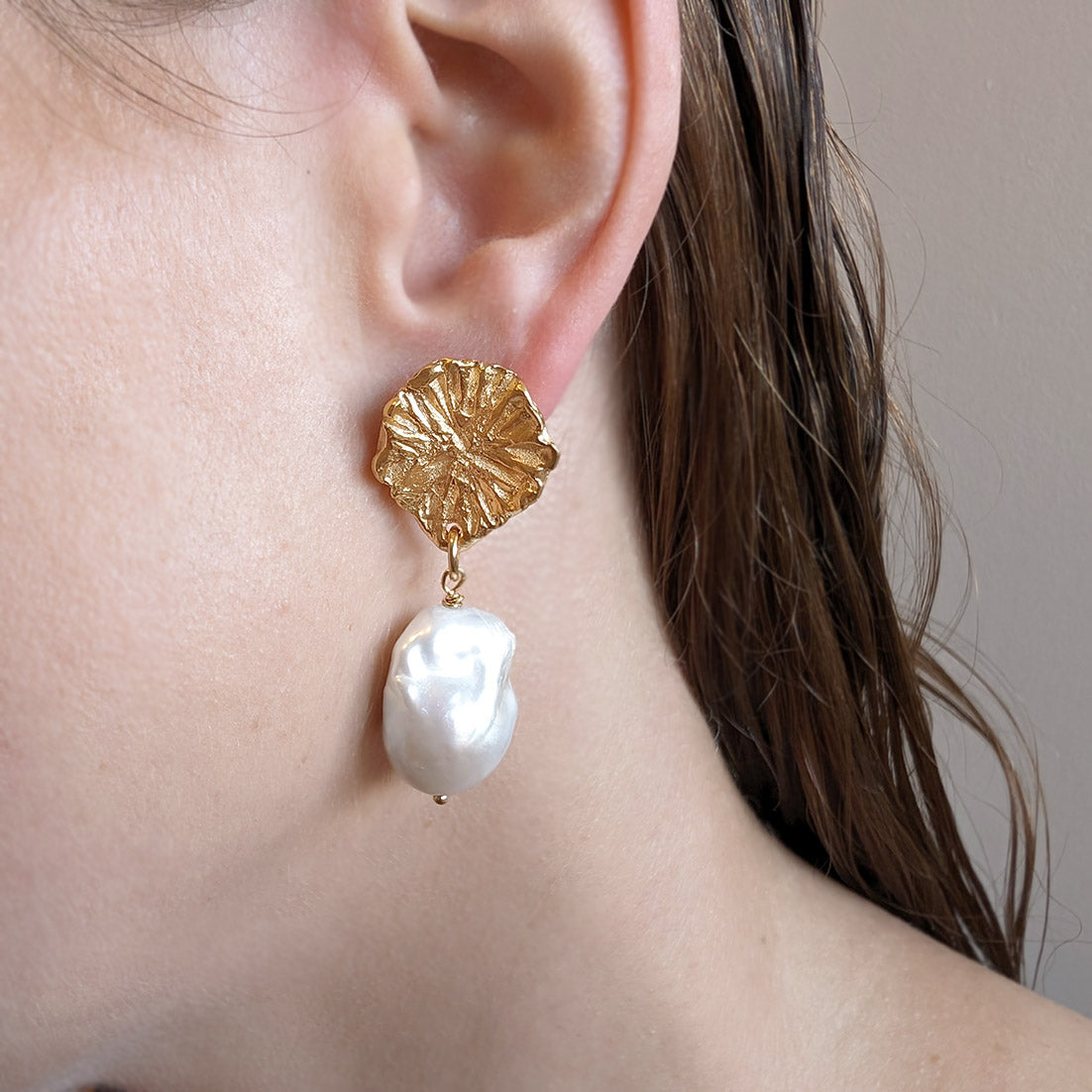 Lekre øredobber i sølv med store hvite barokkperler, fra kolleksjonen "Nature´s Treasures".