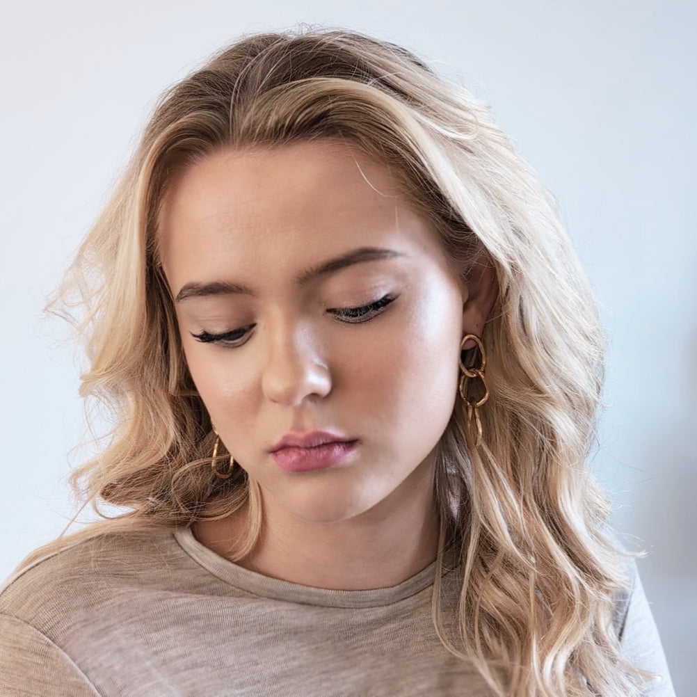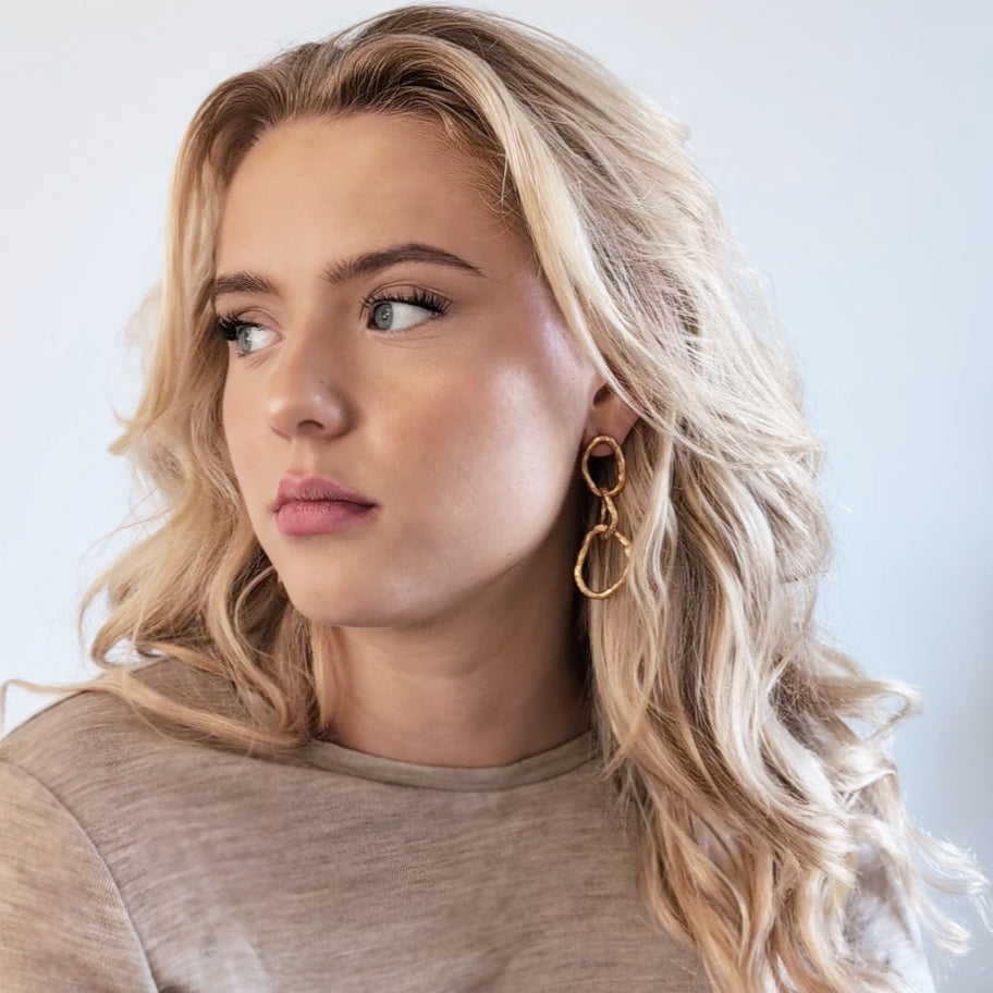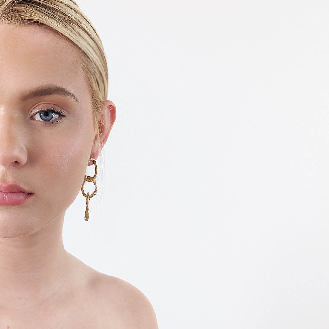 Skulpturelle kjede-øredobber fra kolleksjonen "Flow" i 18K gullbelagt sølv.