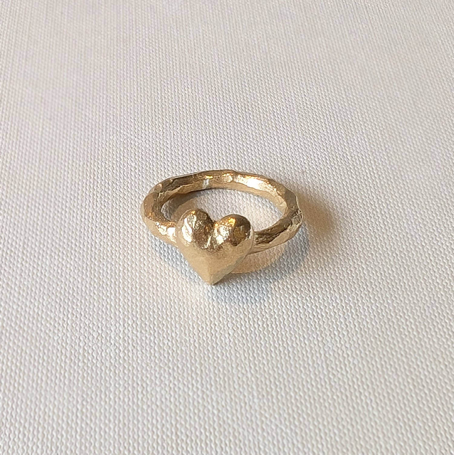 Gullbelagt ring med et stort skinnende, håndskåret hjerte. Fra kolleksjonen "Aurora".