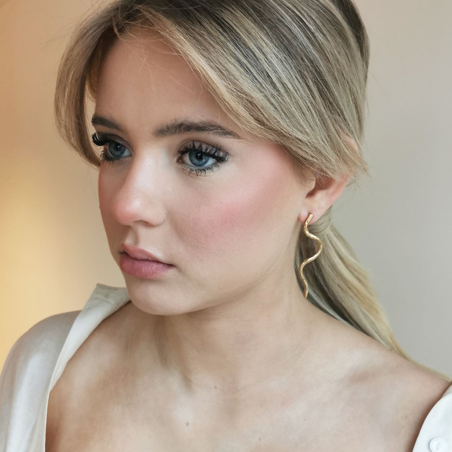Skulpturelle øredobber fra kolleksjonen "Flow" i 18K gullbelagt sølv.