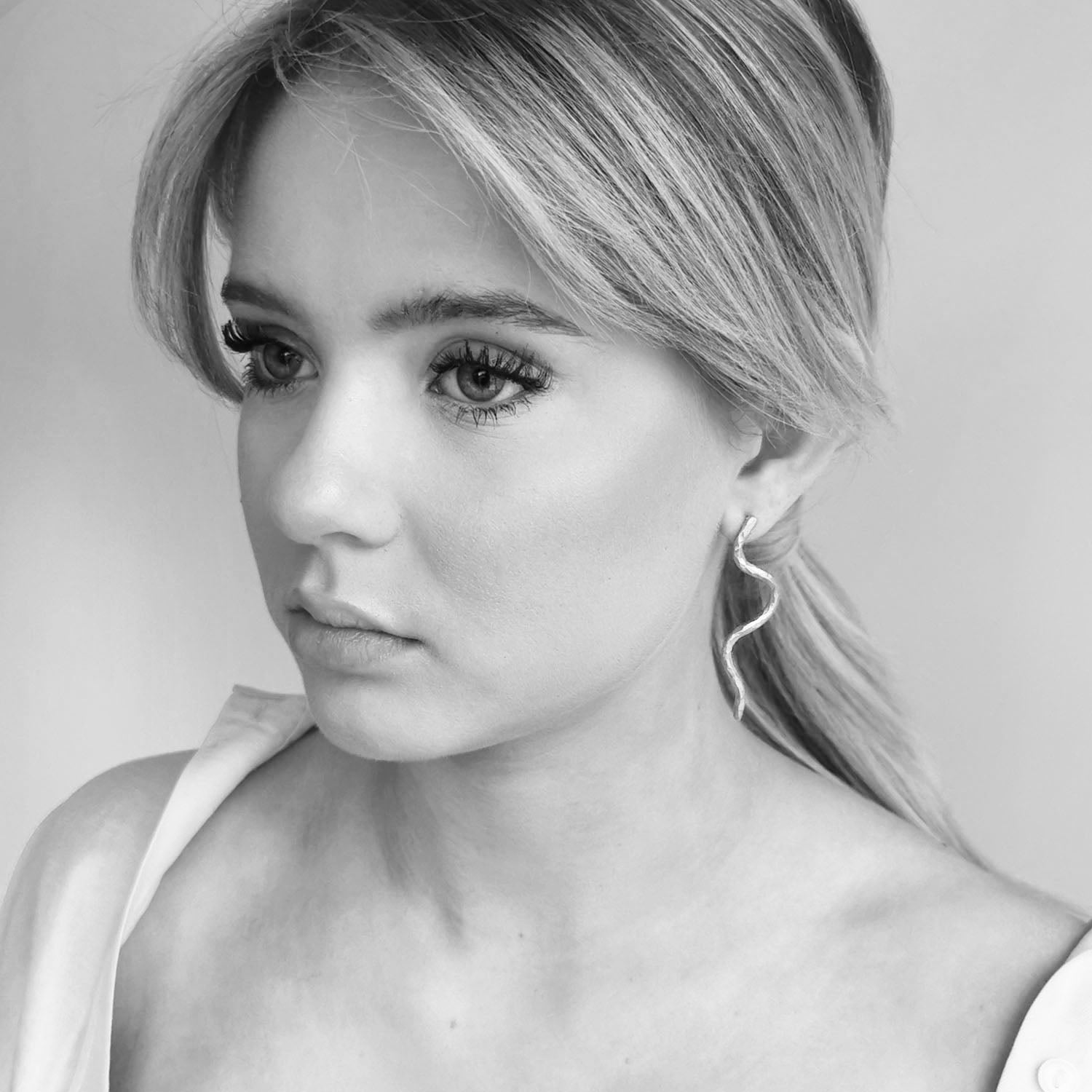 Skulpturelle øredobber fra kolleksjonen "Flow" i sølv.