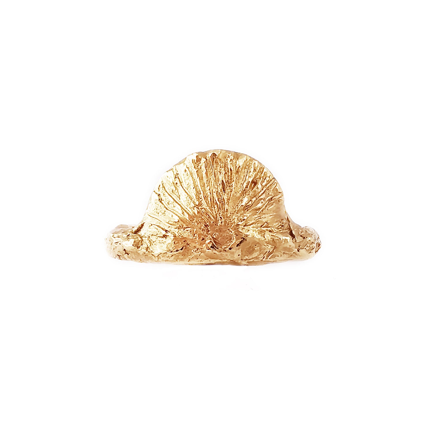 Gullbelagt ring med en stigende sol. Fra kolleksjonen "Aurora".