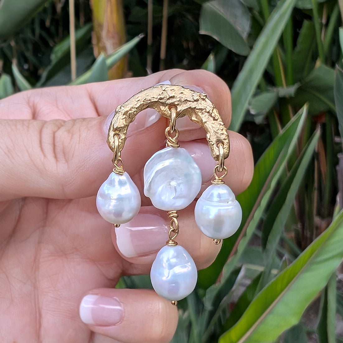 Nydelige øredobber i 18K gullbelagt sølv, med hvite barokk- og keshi-perler, fra kolleksjonen "Nature´s Treasures".