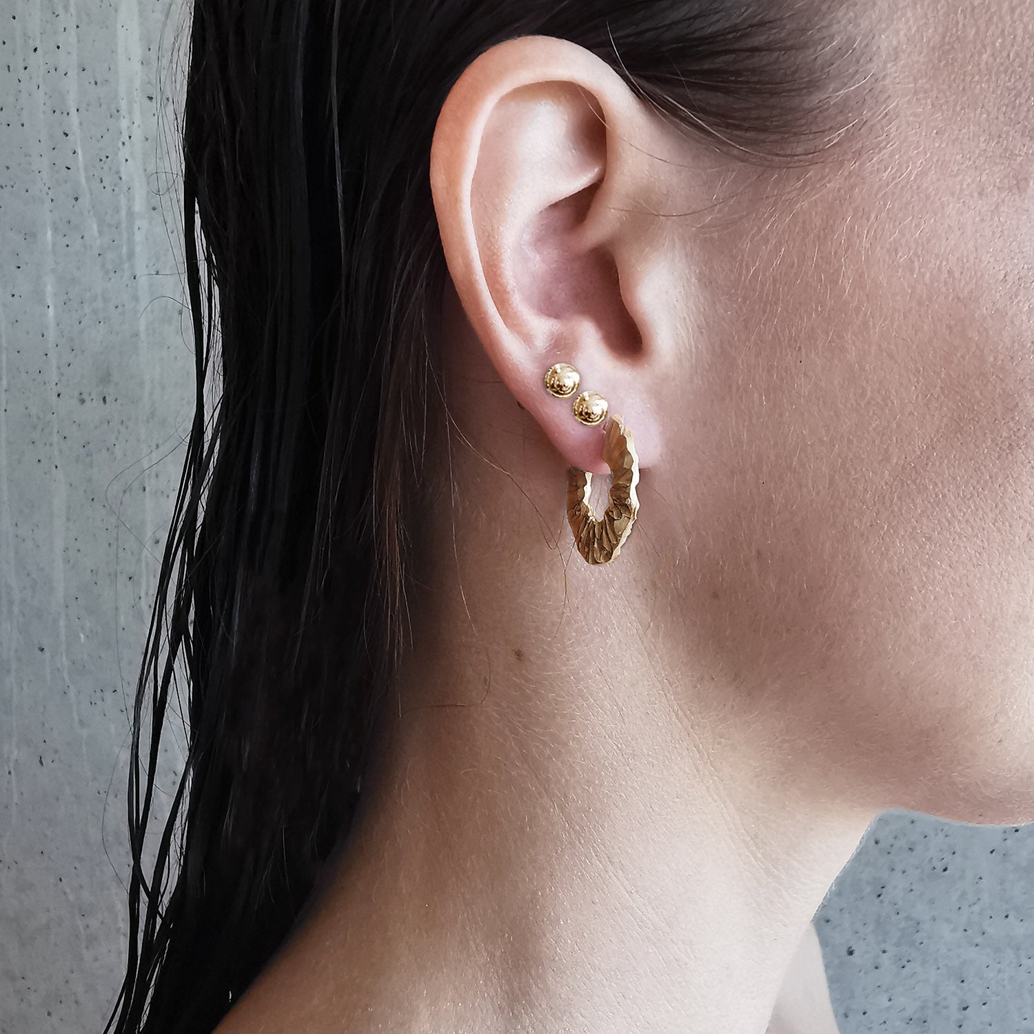 Skulpturelle øredobber i 18K gullbelagt sølv, fra kolleksjonen "Flow".