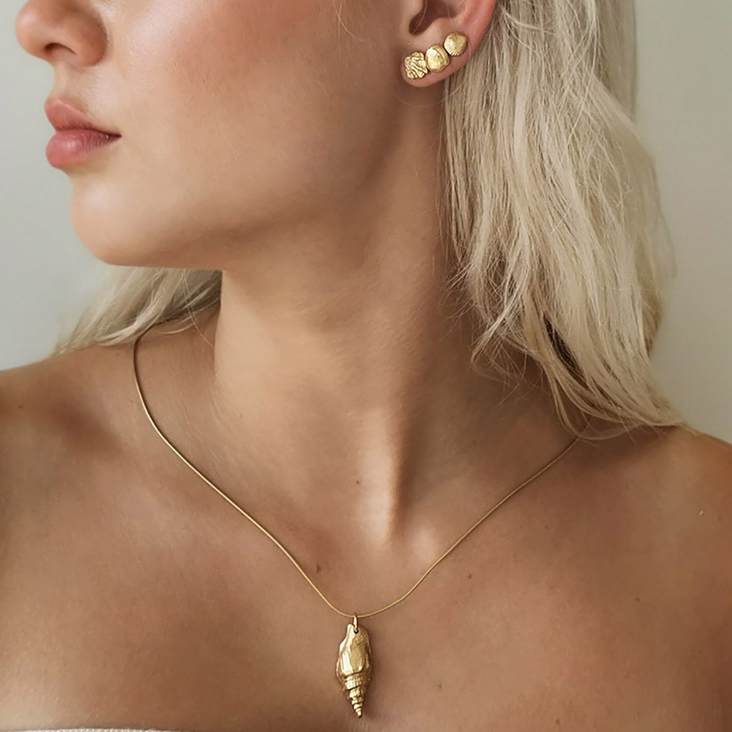 Et vakkert slangekjede med et stort skjell- anheng i 18K gullbelagt sølv. Fra samlingen "Nature´s Treasures".