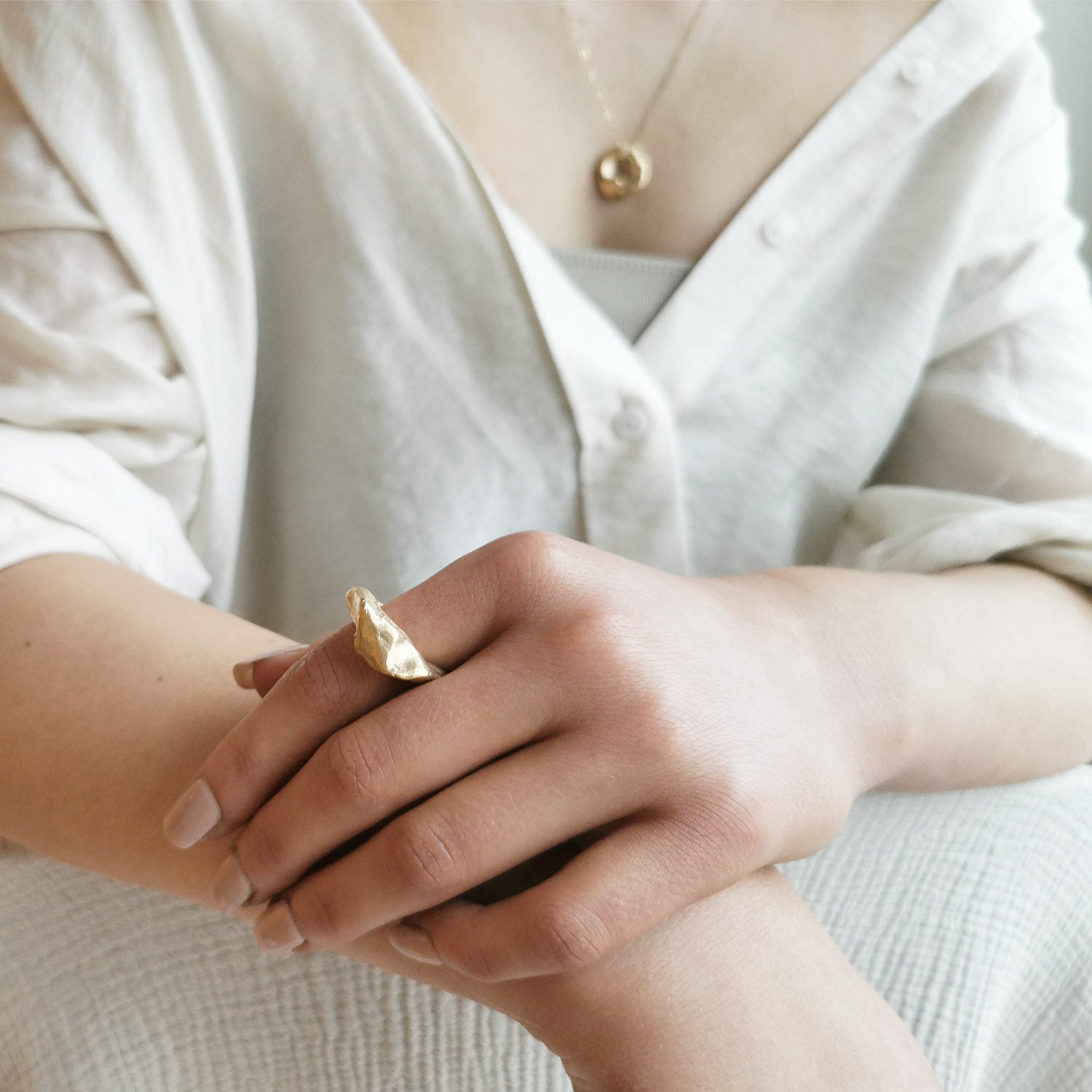 Skulpturell statementring fra kolleksjonen "Flow".