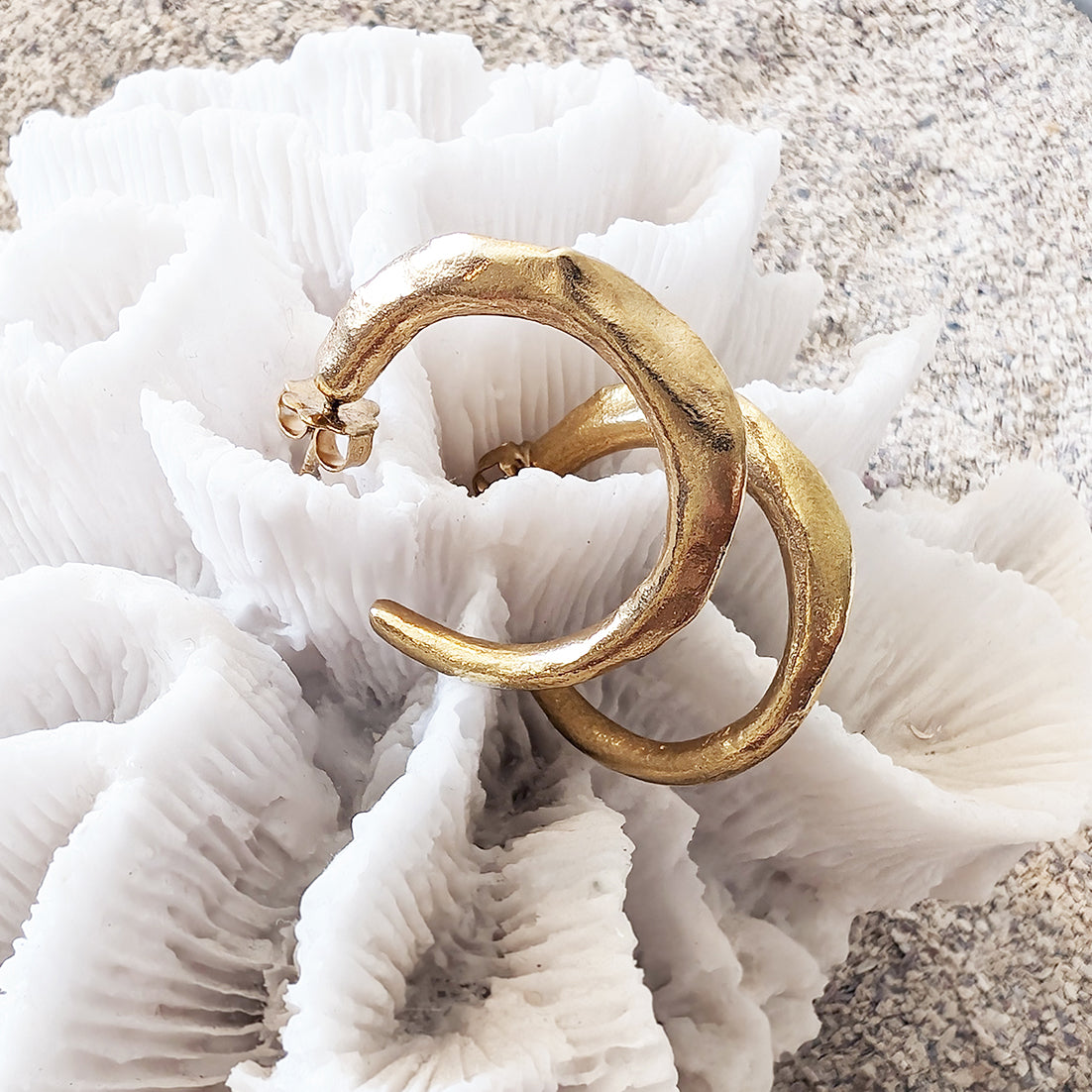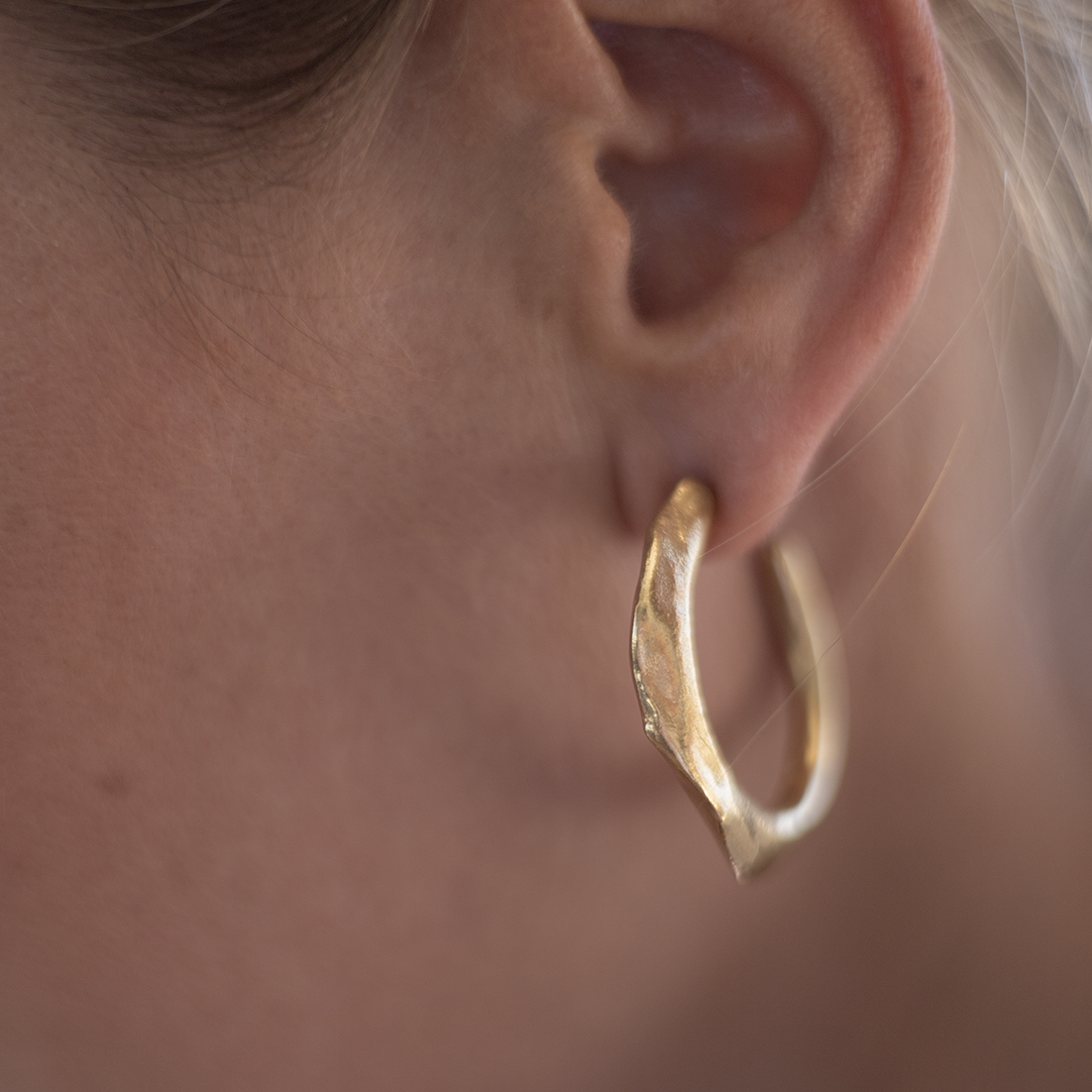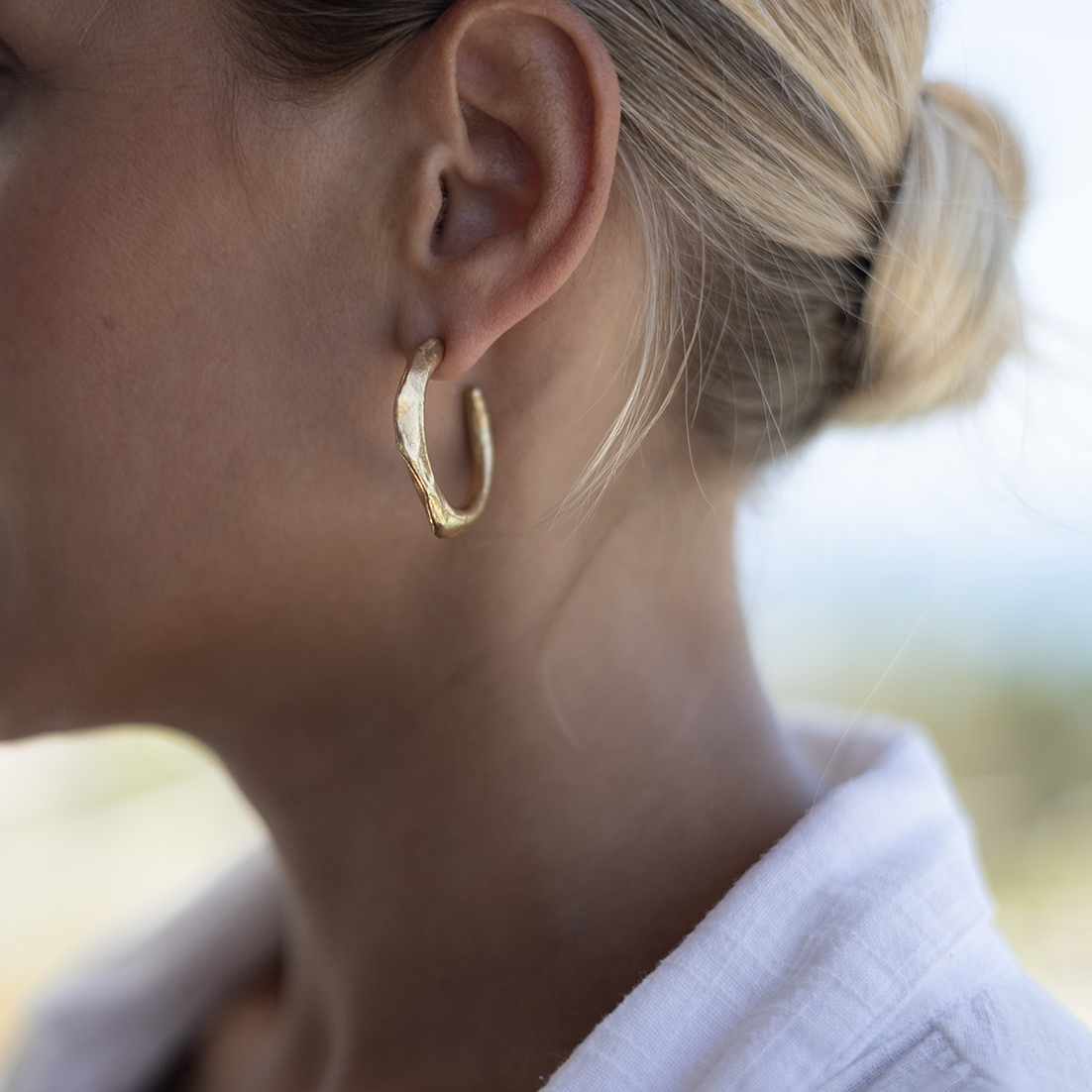 Store øreringer i 18K gullbelagt sølv med overflate som minner om "svaberg", en unik berg-formasjon funnet ved havet.